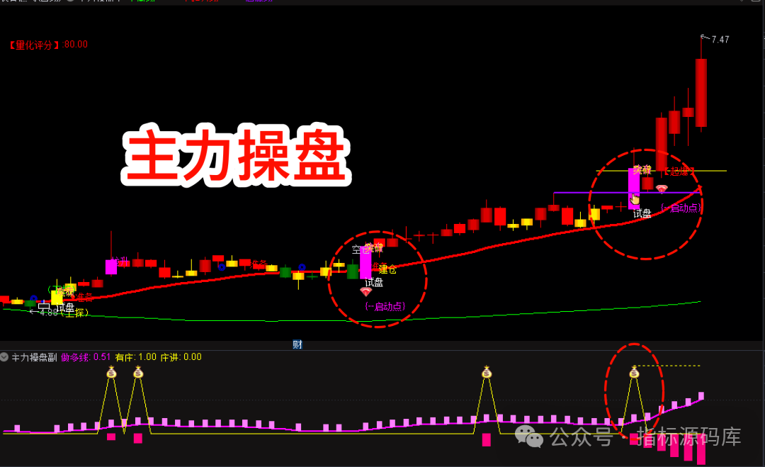 主图指标:5 类核心信号,标注主力每一步操盘动作