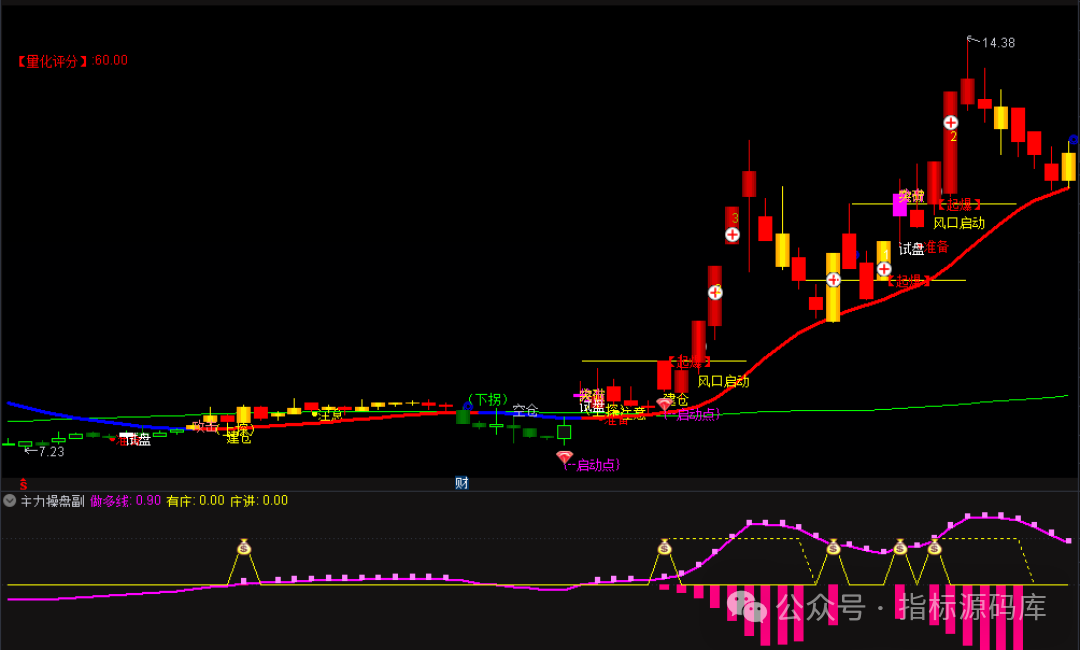 :副图 “主力强度”“庄进信号” 验证主图,确保是真主力动作,不是散户跟风,提高胜率。