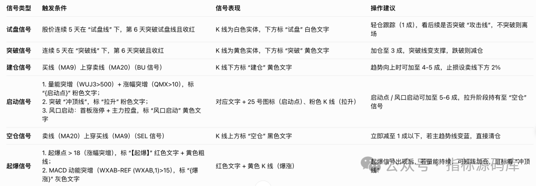 2. 关键操盘信号:试盘→突破→建仓→启动→空仓,全标清