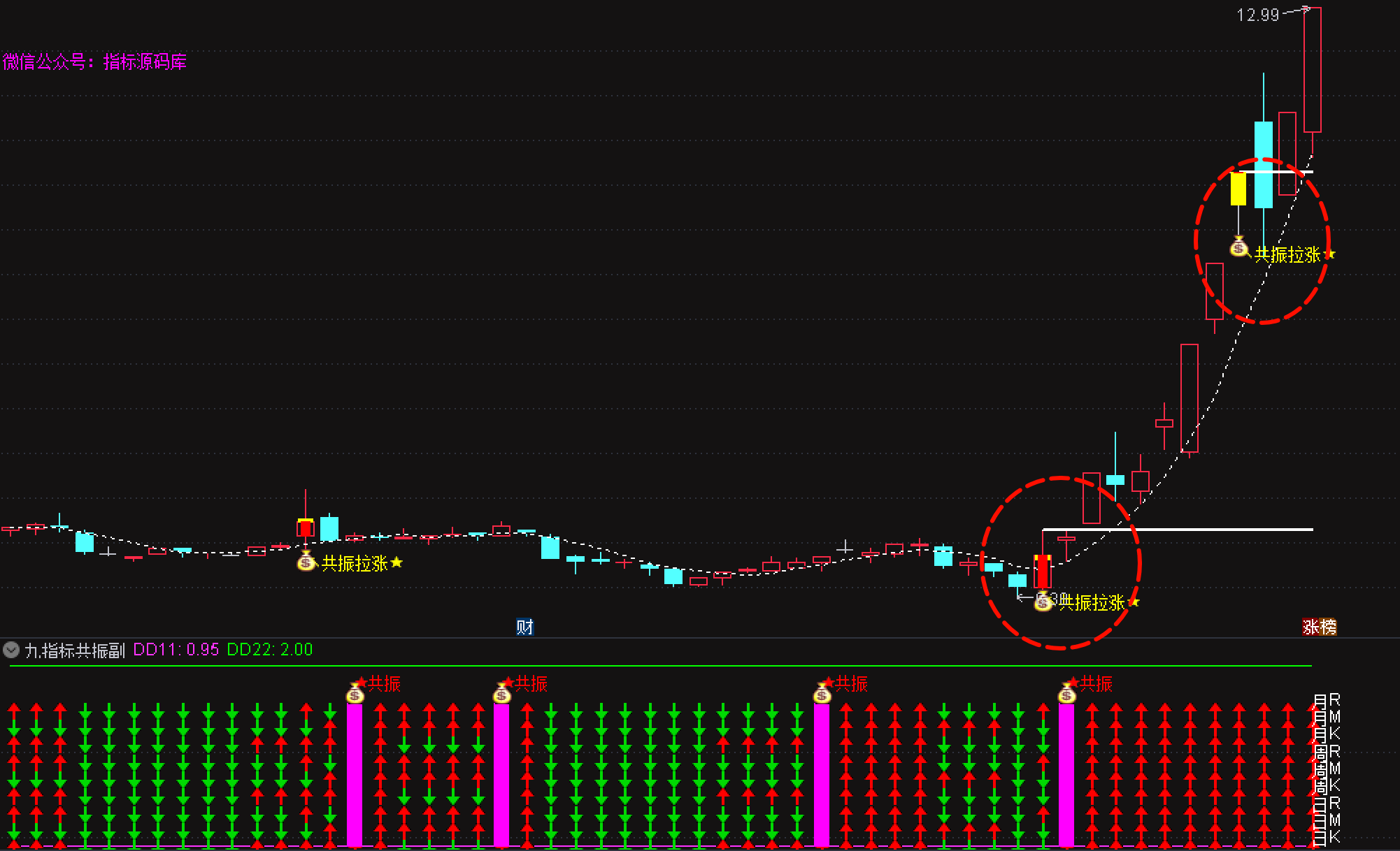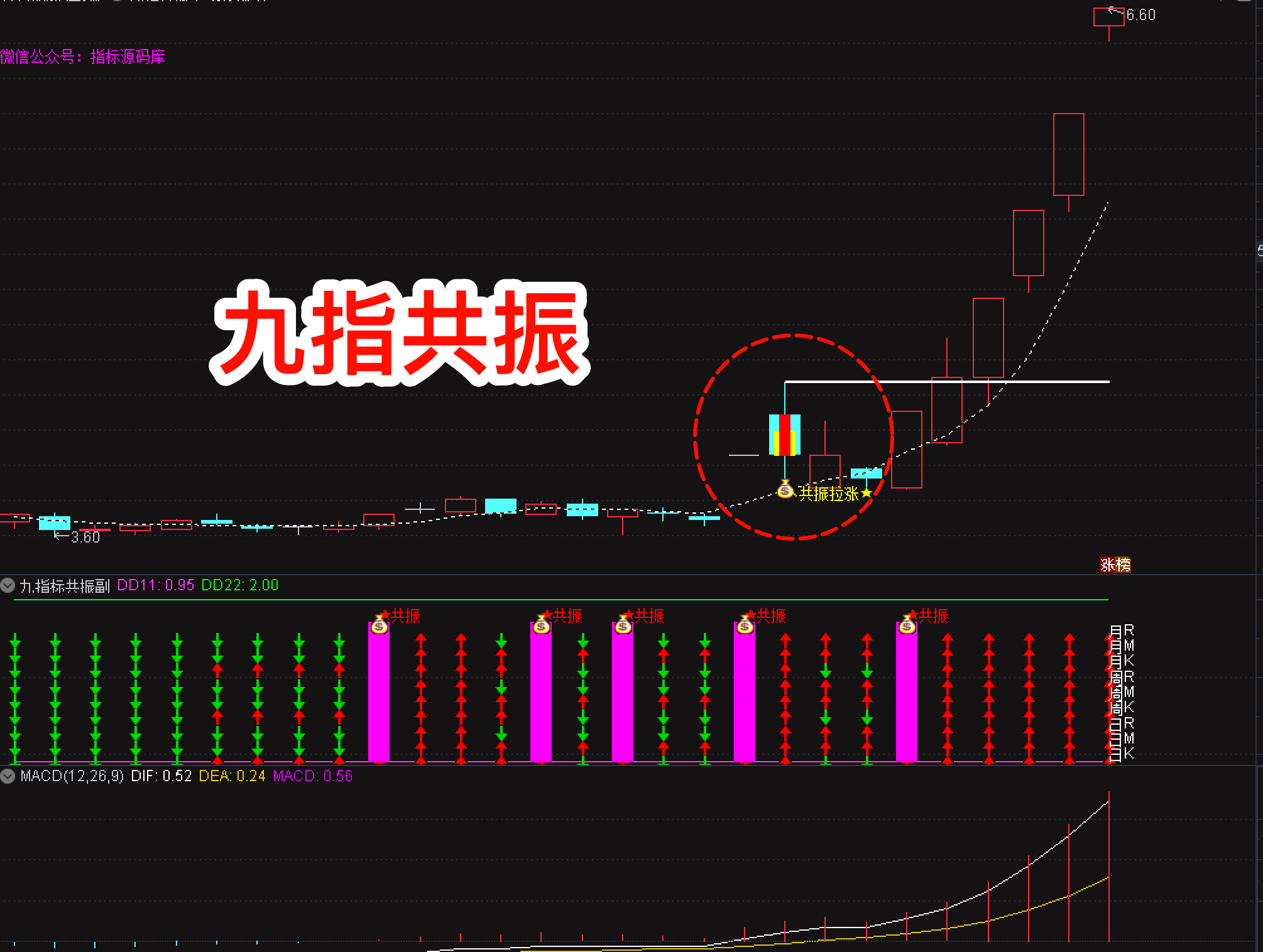 只有 9 个指标全多头(全看涨),才触发 “共振信号”,这时启动的黑马,胜率比单一信号高 3 倍以上!